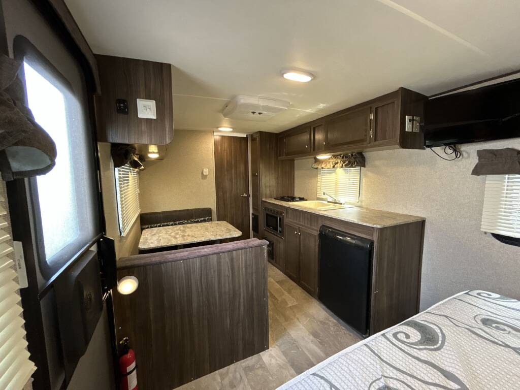 Also Includes: * FRONT QUEEN BED * BOOTH DINETTE * 2 BURNER STOVE * CONVECTION/MICROWAVE OVEN * CENTER KITCHEN