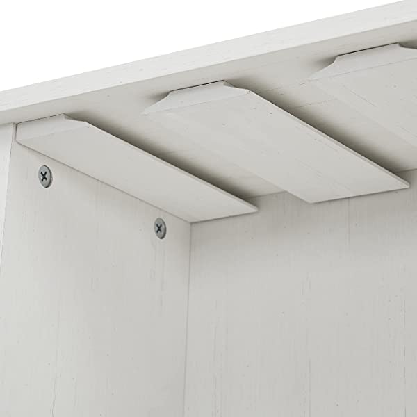 Assembly required. Dimensions: 38.4x15.8x44.6H. Built in wine rack, store up to 15 wine bottles. For extra storage double door cabinetry. Wood constructed frame in grey wash finish.
