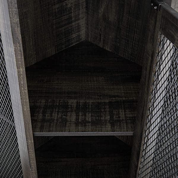 Assembly required. Base cabinet with mesh doors and two interior shelves for storage space. Counter space and wine rack for wine bottle storage. Top wine rack and shelf for items.