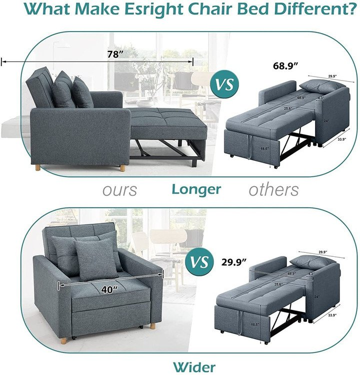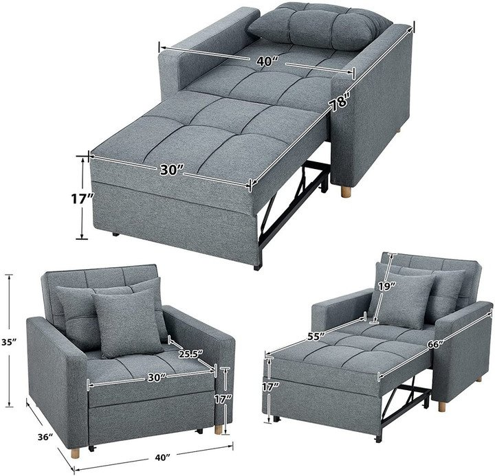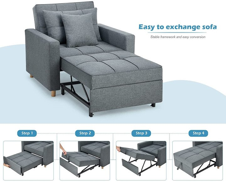 Extra a pillow and cushion? - we have equipped you with an extra pillow and cushion. When they are used as sofas and recliners, they can provide you with adequate lumbar support, and when they are used as a bed, they can provide you with neck support. The convertible armchair bed provides you with more possibilities. Just a space magician!