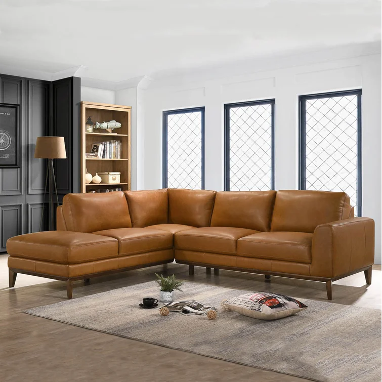 Mary 97" Wide Genuine Leather Sofa & Chaise