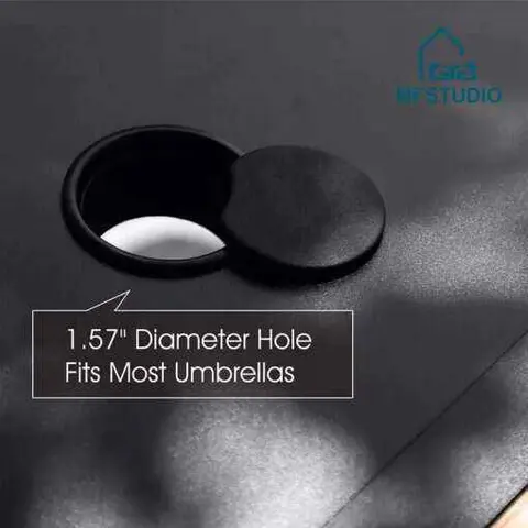 - 【Dimensions】Table size: 60 inches long x 37.4 inches wide x 28 inches high (about 152.4 cm long x 94.1 cm wide x 71.1 cm high, umbrella hole diameter: 18.5 inches, weight per chair: 30 lbs (about 13.6 kg) , Load bearing: 136.1 kg. Umbrella size: L 13 inches x 6.5 inches x 7.8 inches (about 33.8 cm x 17.8 cm) Metal rod (diameter 1.5 inches (about 3.8 cm)
