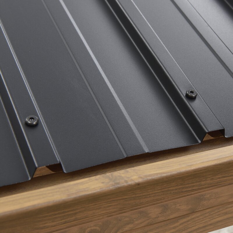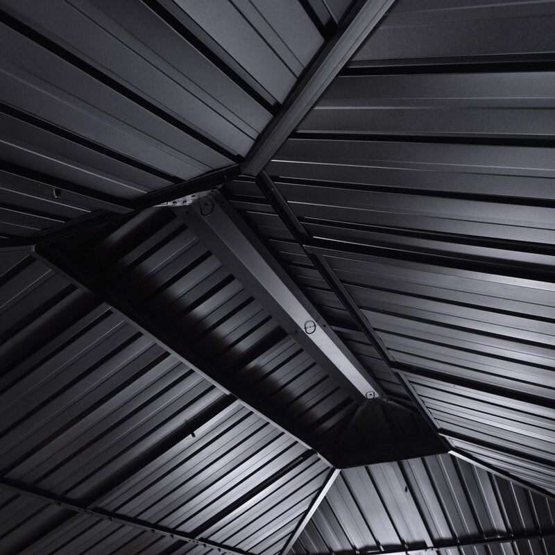 Size: 12' X 18'. Fade-resistant and rust-resistant galvanized steel top, keeps out bright light and harmful UV rays, strong enough to withhold heavy snow.