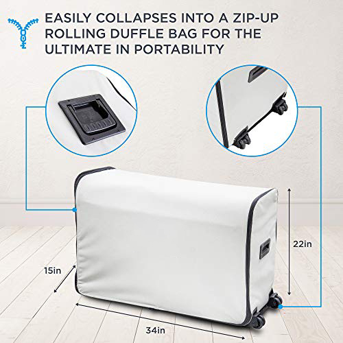 - Rolling duffel storage case included (24 x 14 x 20 inches)