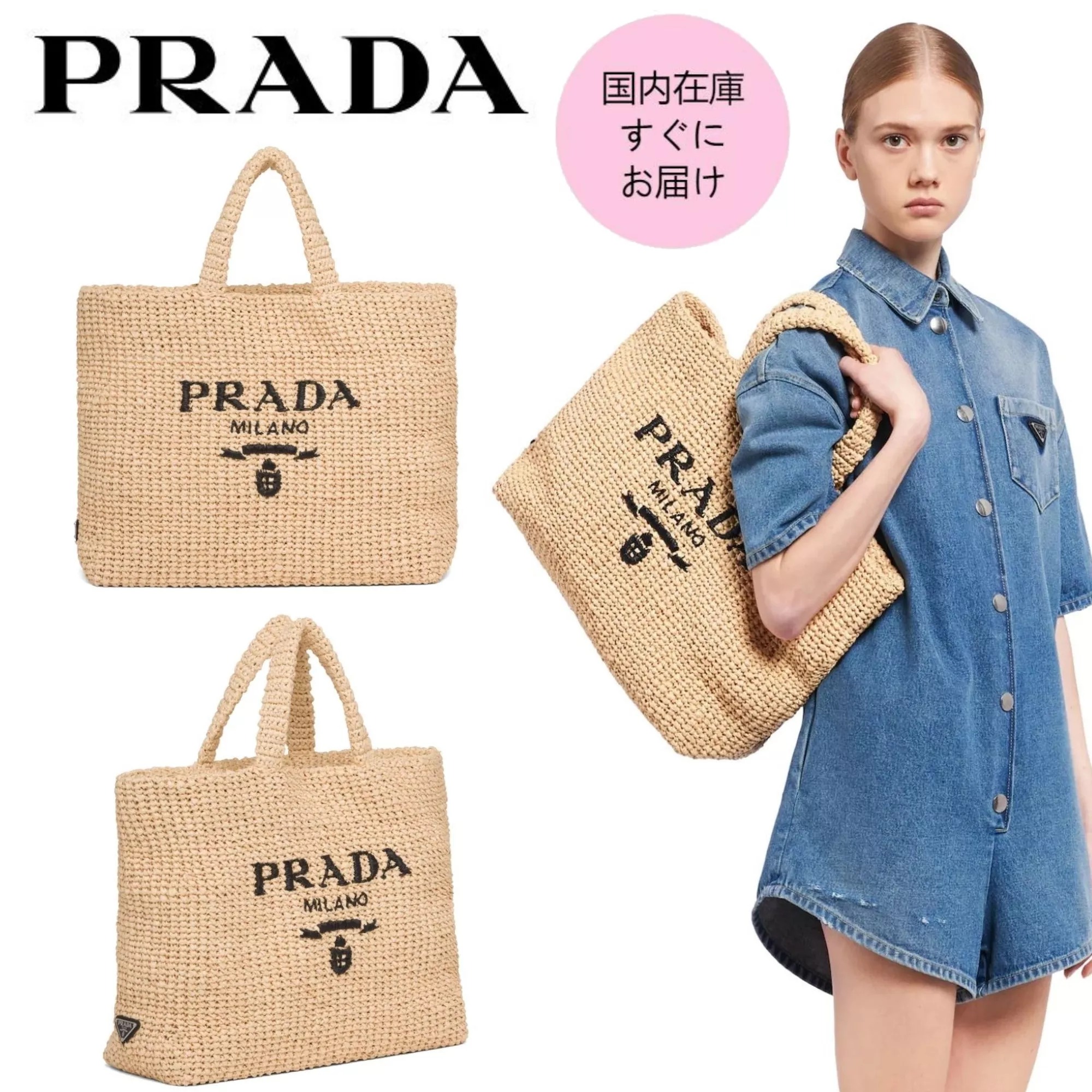 Limited production! Not in stock in Japan! difficult to get! PRADA Raffia Tote Bag, a hot topic in magazines! 2022 version is now available! !! Limited price: If you wait until summer, you won't be able to get it! * 100% new / genuine, purchased only from authorized Prada stores * Because it is a very popular product, inventory is constantly changing. It's a first-come-first-served sale!
