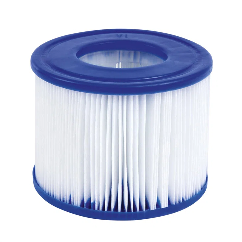 - The hot tub comes with built-in cupholders, a reinforced cover that locks in heat, 2 filter cartridges, and a repair patch