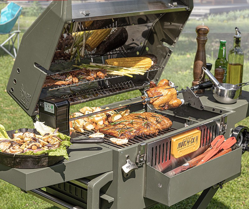The 7mm thick stainless cooking grate provides 275 square inches of space.