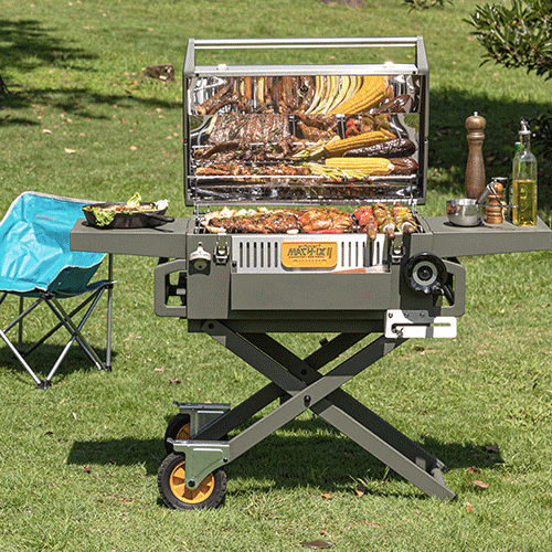 One handed setup and collapse. Grill is attached to the cart for quick & easy setup. Compact fold takes up minimal space in the garage and fits perfectly in the trunk of your car. Large grilling area (15 burger capacity) so that the entire meal is grilled and ready to eat at the same time. Purposely designed to optimize gas usage.