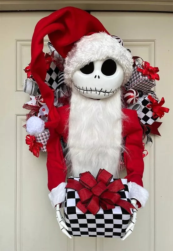 ✨🎁Nightmare Before Christmas Jack Skellington! Leaning slightly forward with a gift in his hand. Grab this before it’s gone!!✨This wreath will open a new chapter in your circle of friends, you will lead a new trend!