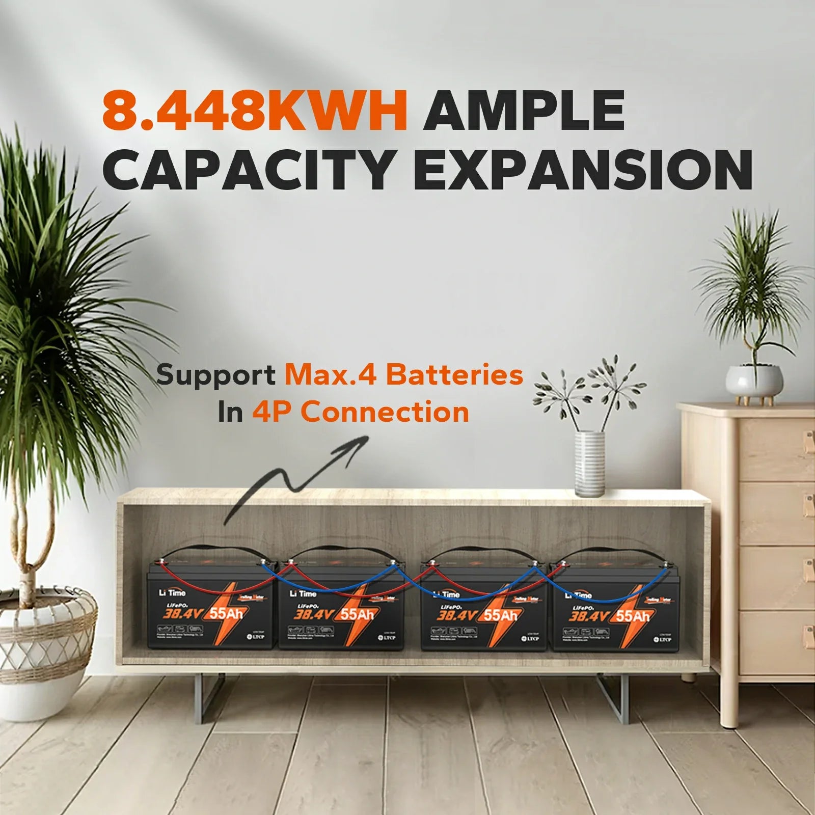- Max. 8.448kWh Energy Expansion: Max 4P to build a 36V 220Ah battery system ( 8.448kWh energy & 8.448kW load Power)
