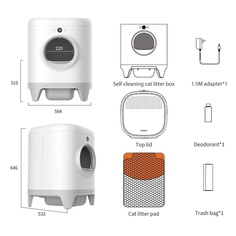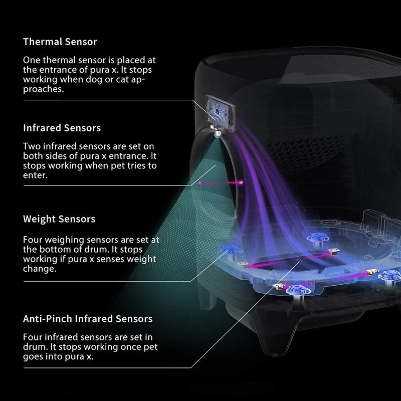 There are sensors inside the litter box that detects activities in the surrounding environment that ensures your pet can use it safely. It will also monitor when it is an appropriate time to initiate automatic cleaning cycles. The litter box has a Triple Anti-Pinch Protection system, developed based on a cat's natural behaviors. It also has multiple maintenance protection barriers to avoid a potential safety hazard. A special deodorizing liquid that atomizes and sprays the waste bin ensures odor control at the source. The ultrasonic wave is quiet so that your cat will not be disturbed. It also prevents the litter from mildewing. The purifying refill solution is non-toxic and made from raw materials that are safe for use around pets. It also contains plant extracts that safely decomposes ammonia and hydrogen sulfides found in cat waste.