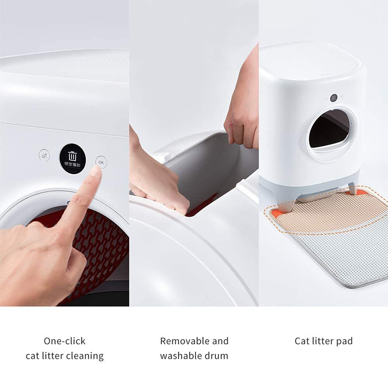 The cleaning process starts when the smart sensors detect your cat has finished using it and ends when pet waste and clumps roll into the waste bin.