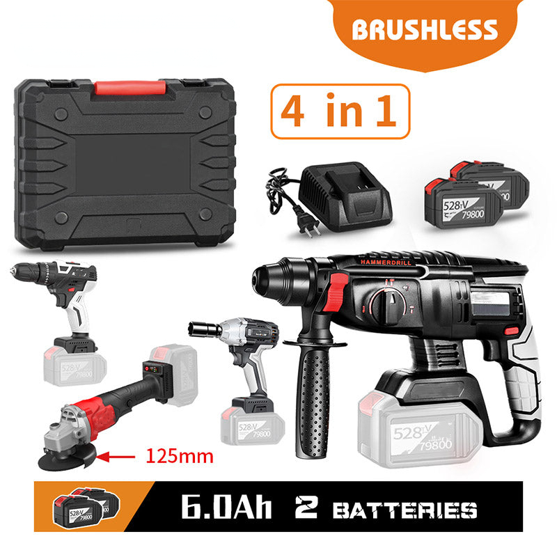 Lithium battery: 18650/2.0Ah*15 cells Battery capacity: 15*2001mA Number of batteries: two Plastic box size: 55*14*45 Electric hammer bare metal: 2.47kg Angle grinder bare metal: 1.28kg Bare wrench: 1.05kg Drilling bare metal: 0.72kg Battery weight: 0.88kg Charger weight: 0.21kg Plastic box weight: 2.74kg