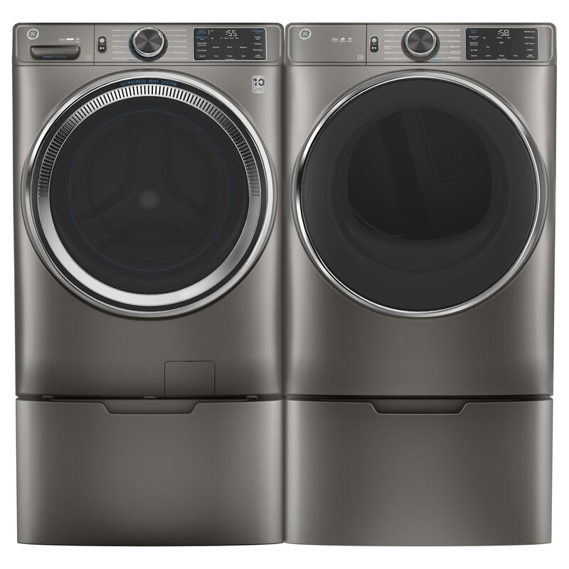 GE Appliances Energy Star Washer & Dryer Set with Stackable 4.8 Cubic Feet Front Load Washer and 7.8 Cubic Feet Electric Dryer(Satin Nickel)